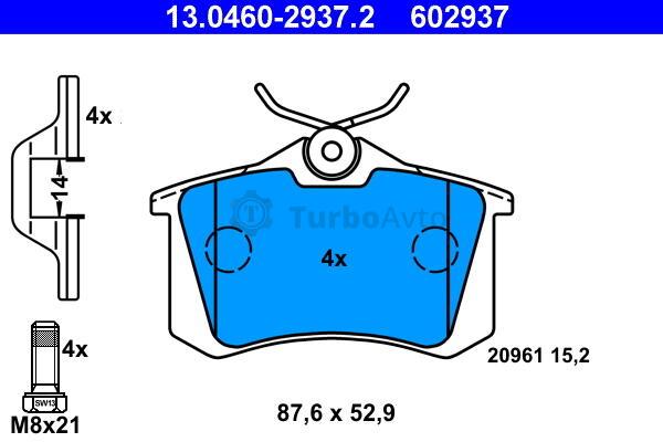 Комплект гальмівних колодок, дискове гальмо ATE 13.0460-2937.2