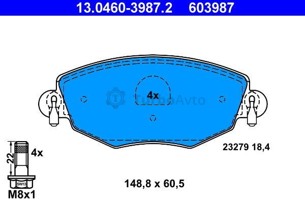 Комплект гальмівних колодок, дискове гальмо ATE 13.0460-3987.2