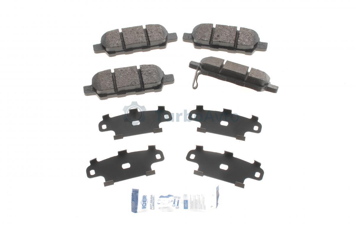Комплект гальмівних колодок задн (з шумопоглинаючою пластиною), INFINITI EX, FX, G, JX, M, M35, M37, M45, Q50, Q60, Q70, QX50 I NISSAN CUBE, JUKE, LEAF, MAXIMA, MAXIMA VII 1.2-Electric 08.03-