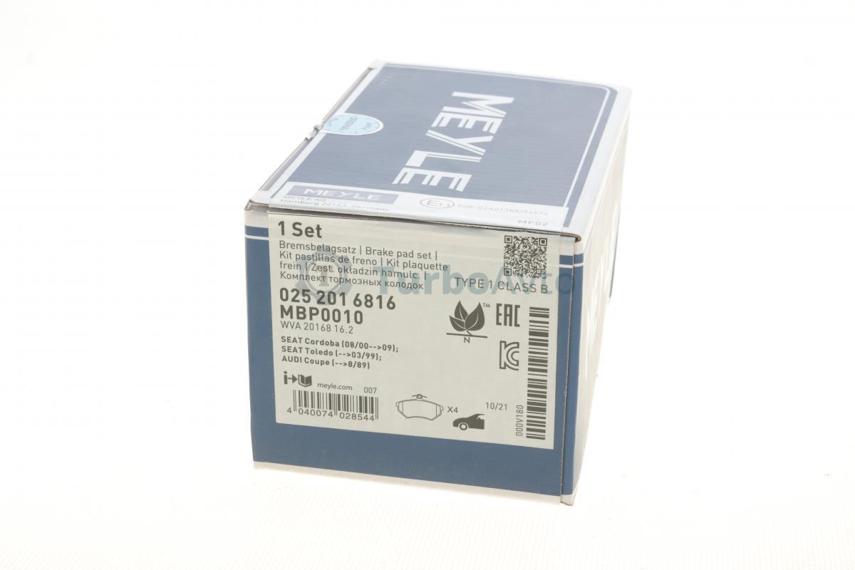 Комплект гальмівних колодок, дискове гальмо MEYLE 025 201 6816