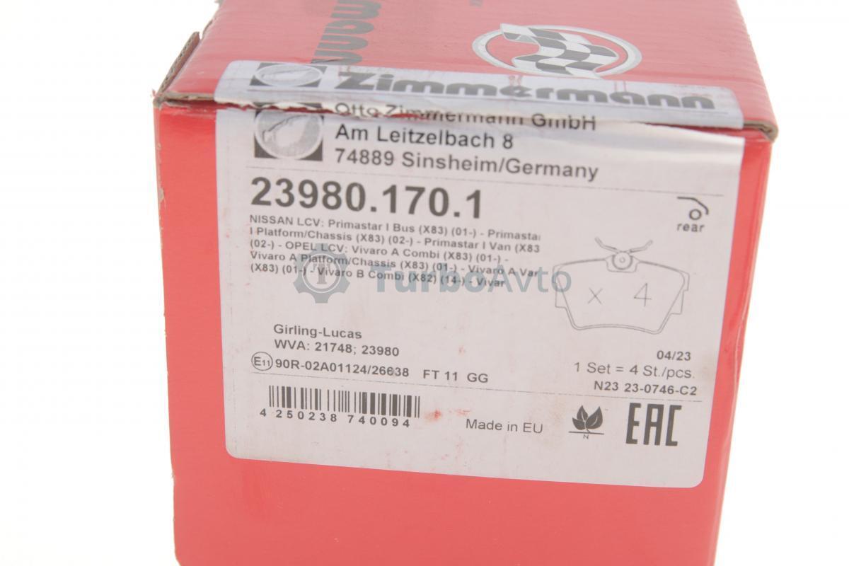 Комплект гальмівних колодок, дискове гальмо ZIMMERMANN 23980.170.1